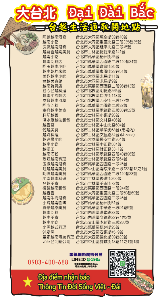 台越生活通免費取閱新住民發行餐廳和商店地址-台北市